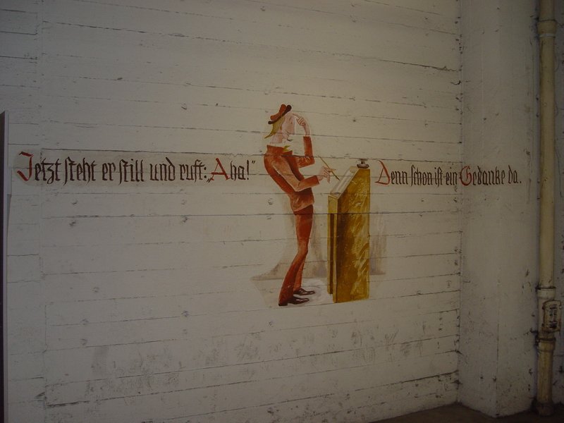 Flughafen Tempelhof. Unter den Flughafengebäuden wurden während des 2. Weltkrieg Kellerräume zu Bunker ausgebaut. Hier im Bild eine originale Zeichnung aus dieser Zeit in einem der Bunker. (9.7.2005) Reinhard Korsch