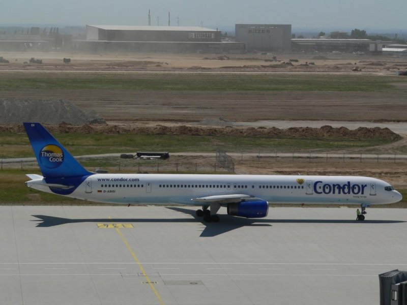 Belair Airlines, HB-IHS, Boeing 757-2G5. Ein stangenloser Flugzeugschlepper der Firma Goldhofer bringt die Boeing zur Werft nebenan. 6.9.2006 Jürgen Walter