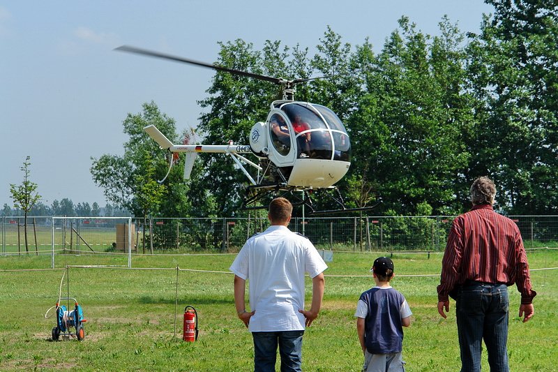 D-HOBS. Hughes-Schweizer H 269 C. Der Hubschrauber der Fa. SKY HELI machte Rundflüge während der Oldtimer Show (Kfz) in Paaren/Glien, Brandenburg. Foto: 26.5.2007 Reinhard Korsch
