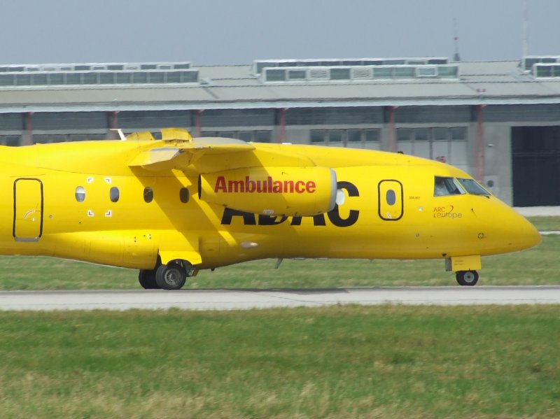 Ein ADAC Luftambulanz Jet (Dornier Do-38) auf dem Rollfeld in Stuttgart (STR) am 29.08.2008. Im Hintergrund ist der Stuttgarter Fernsehturm bei Degerloch/ Waldau zu sehen. Andreas Mack