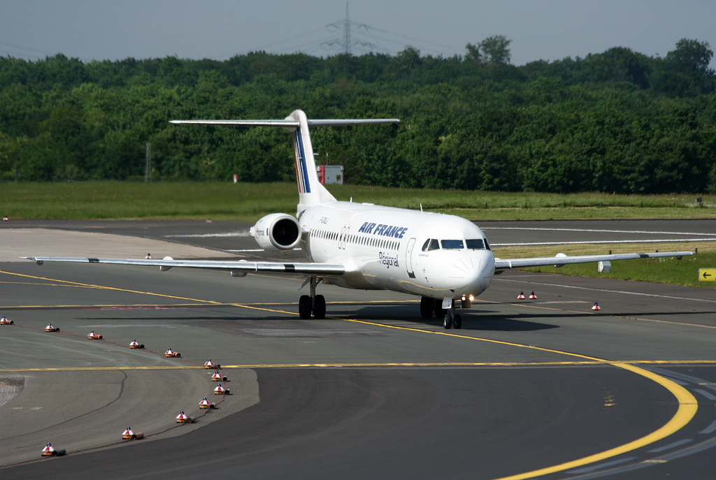 Air France Regional F100 F-GNLK nach dem Verlassen der 05R in DUS / EDDL / Düsseldorf am 18.05.2008