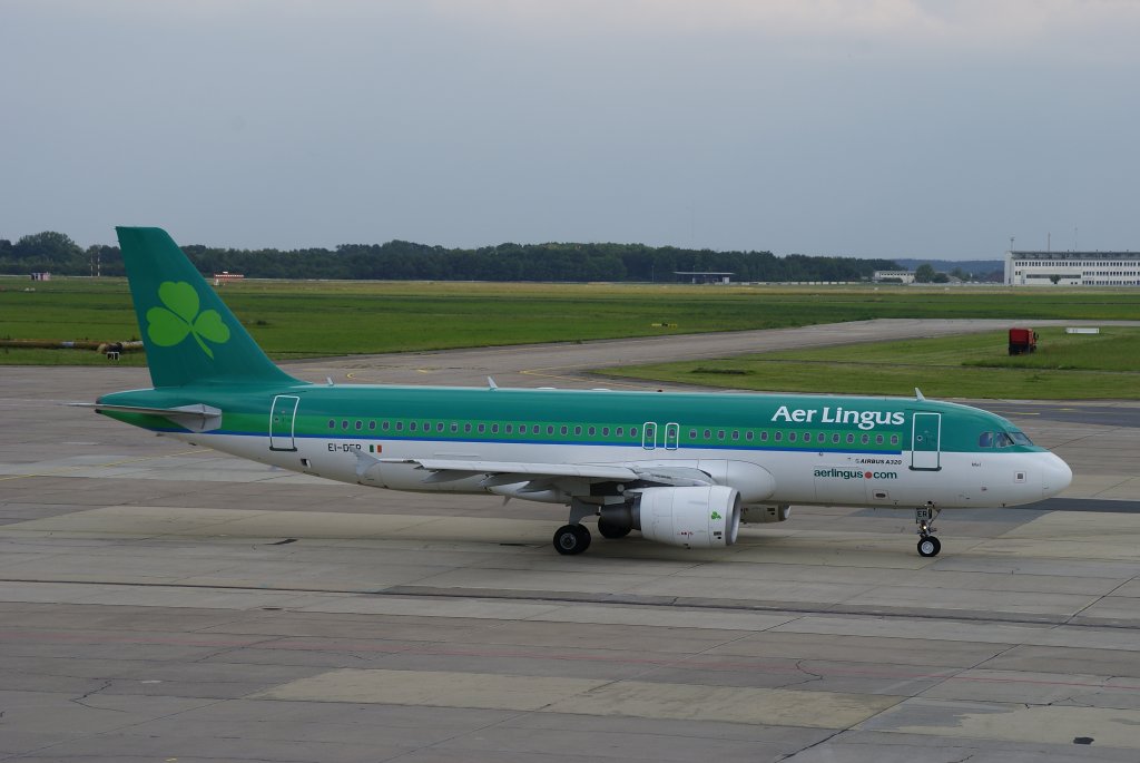 Aer Lingus, Airbus A320-200, Kennung: EI-DER rollt zur Startbahn in Berlin-Schönefeld am 02.07.2009