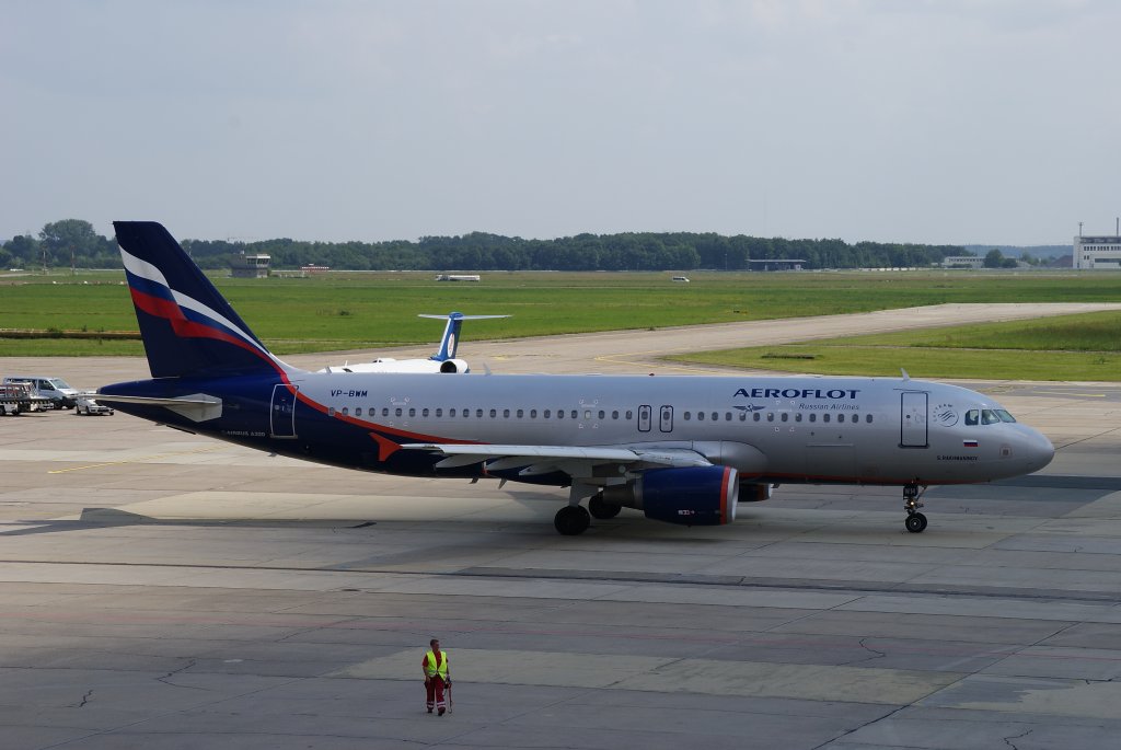 Aeroflot, Airbus A320-200, Kennung: VP-BWM rollt zur Startbahn in Berlin-Schönefeld am 02.07.2009