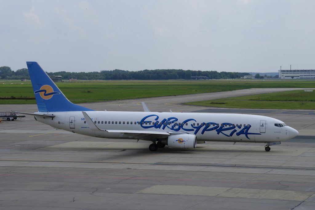 EuroCypria Airlines, Boeing 737-800WL, Kennung: 5B-DBV rollt zur Startbahn in Berlin-Schönefeld am 02.07.2009