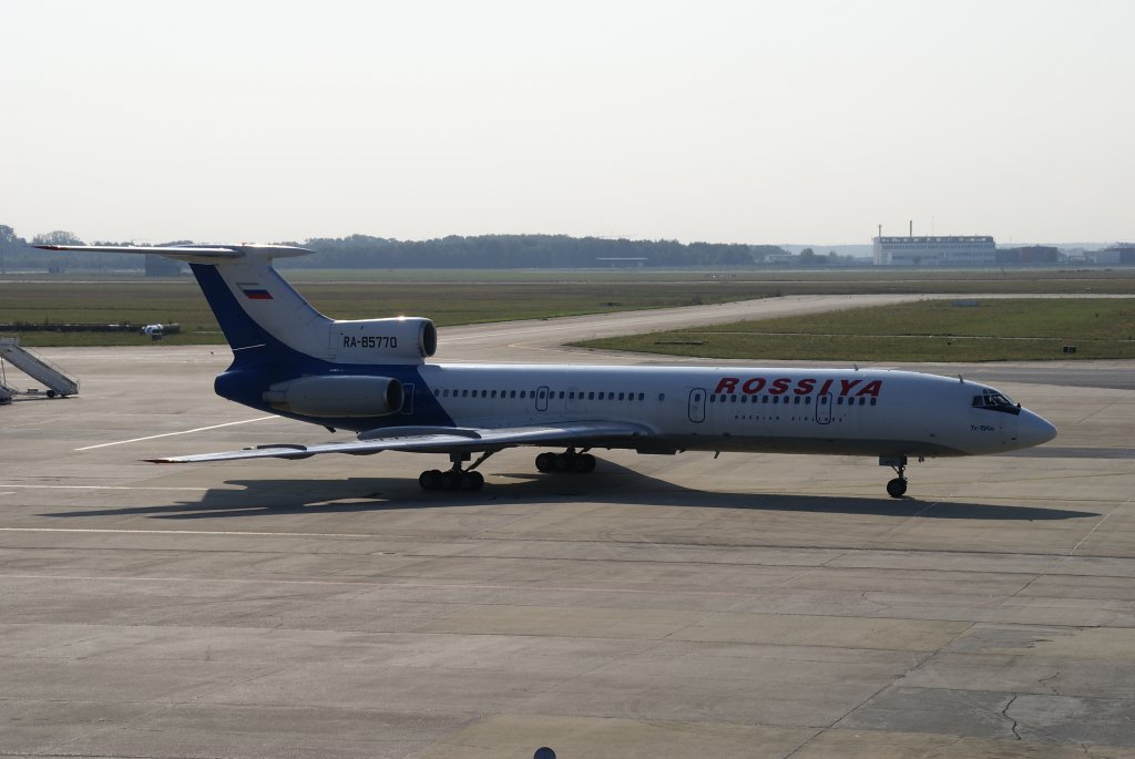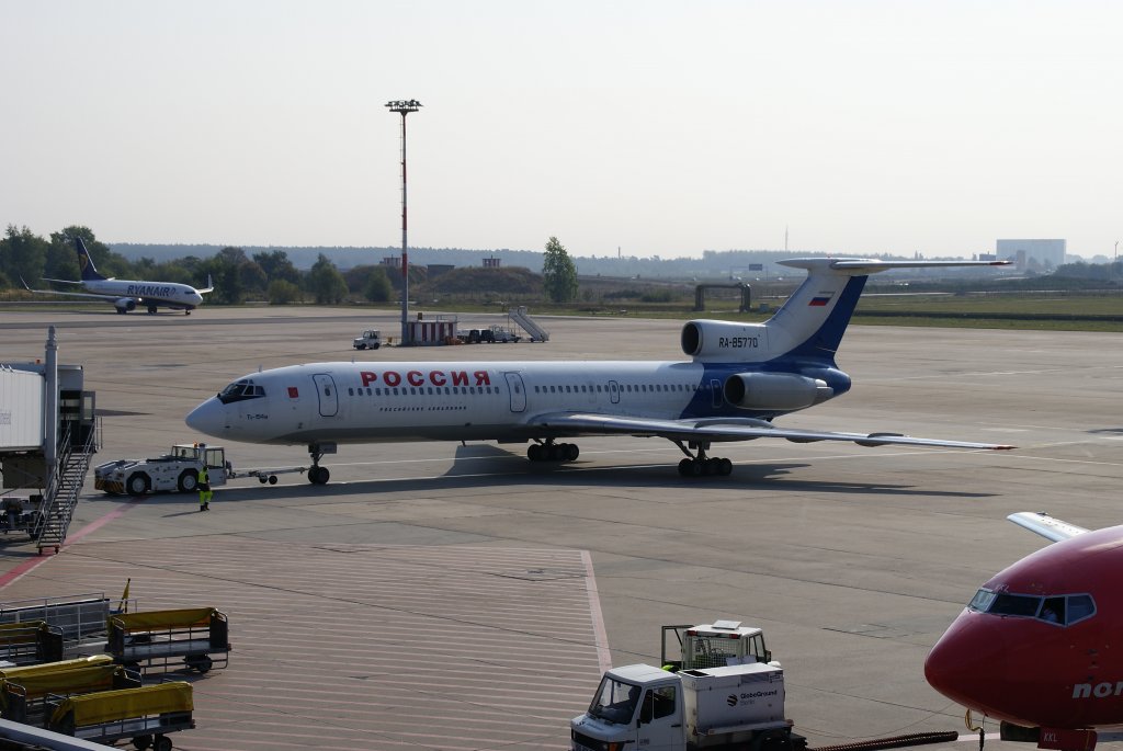 Rarität  Rossija Airlines, Tupolev TU-154M, Kennung: RA-85770 beim  Abschleppen  auf das Rollfeld in Berlin-Schönefeld am 20.09.2009
