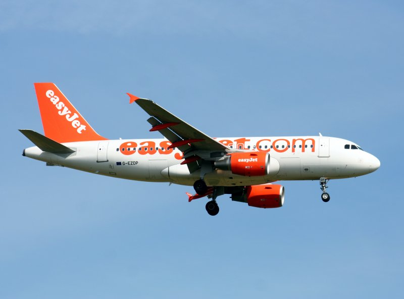 Easyjet A 319-111 G-EZDP im Landeanflug auf den Flughafen Berlin-Schönefeld am 02.08.2009