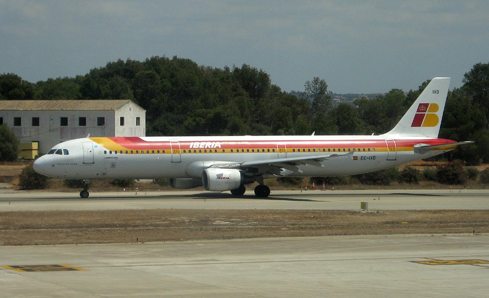 EC-IXD (Airbus A321-211) der Iberia verlässt PMI am 04.08.2009 in Richtung MAD.