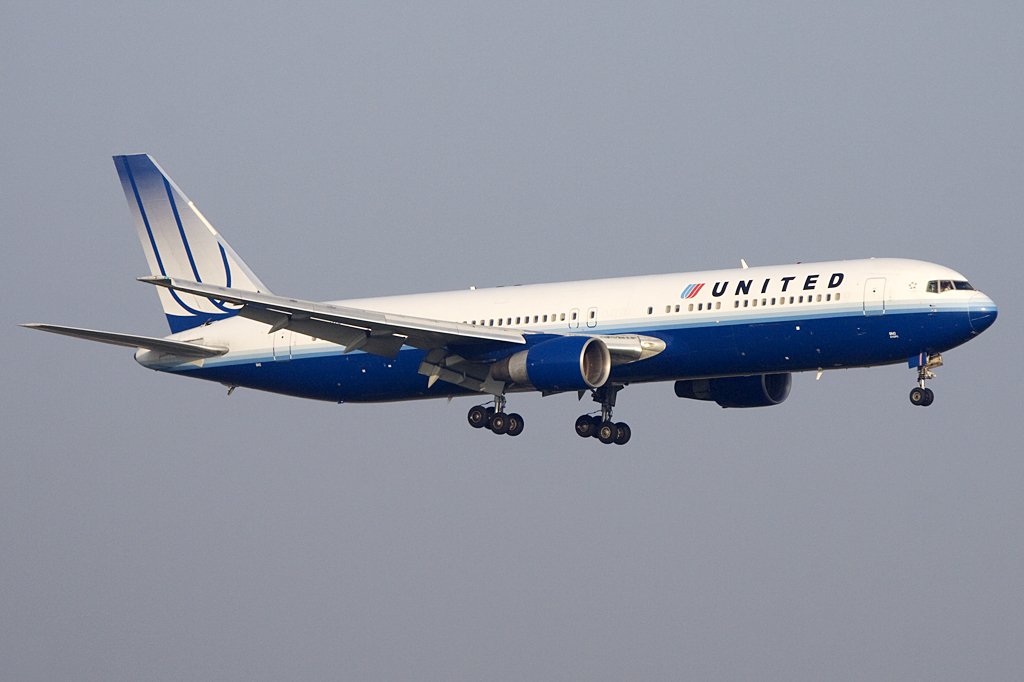 Boeing 767-322(ER) von United Airlines im Anflug auf Piste 14 in Zürich-Kloten am 9.9.2009.