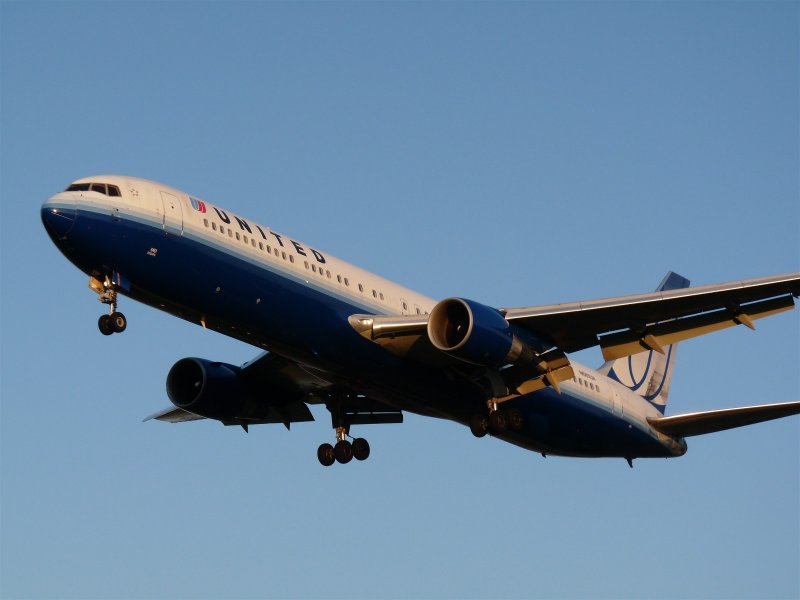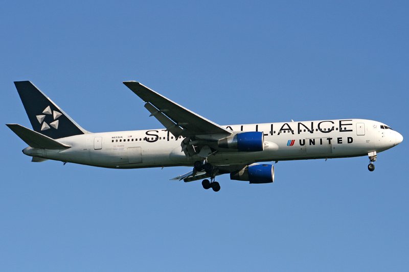 Boeing 767-322(ER) von United Airlines im Anflug auf Piste 14 in    Zürich-Kloten am 9.9.2009.