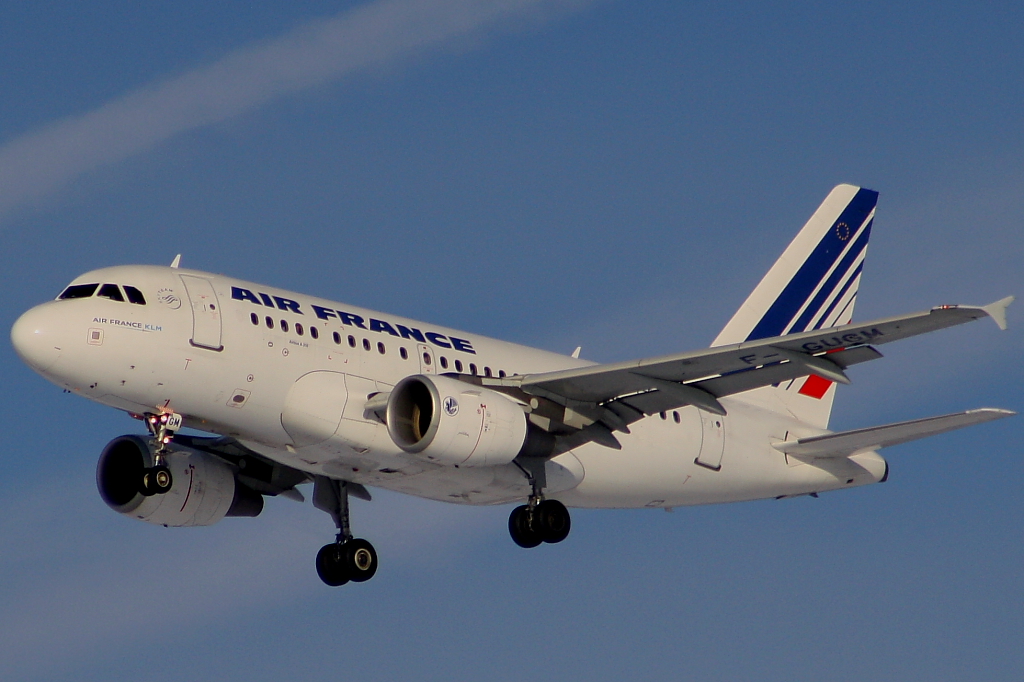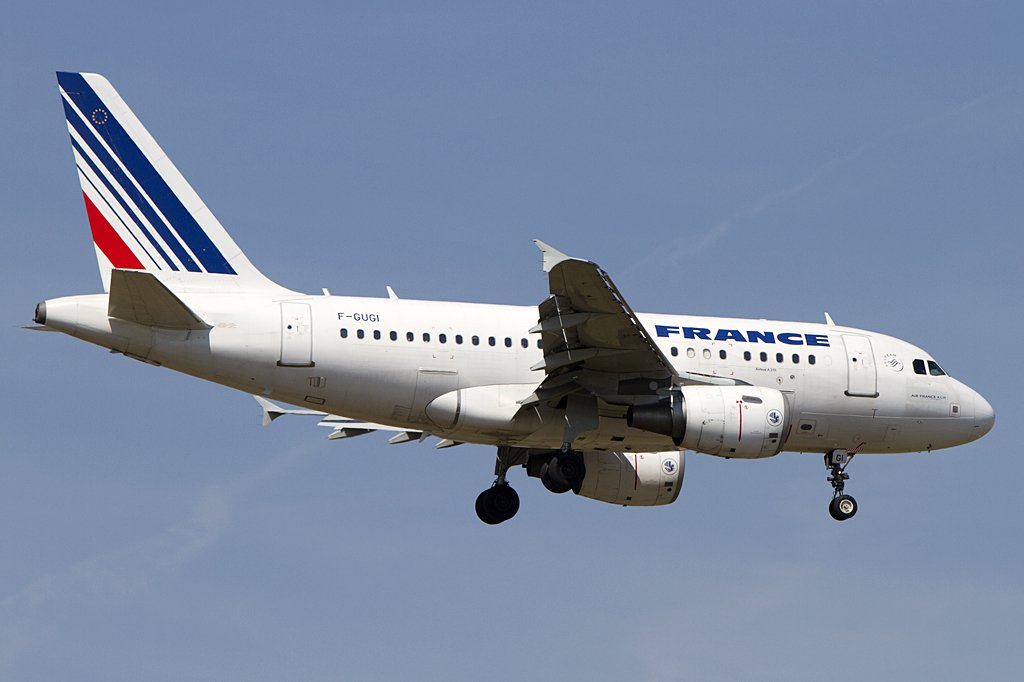 A 318-111 der  Air France , F-GUGJ, beim Anflug auf Düsseldorf - 07.06.2010