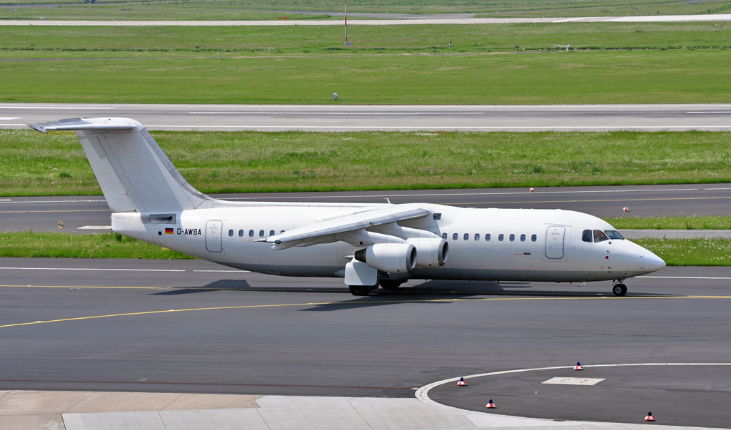 Am 10. Mai 2010 war die D-AWUE von WDL Aviation für Air Berlin auf die Insel Sylt gekommen. Auf dem Foto rollte die BAe 146-200 vom Terminal 1 des Flughafen Sylt zur Startbahn, um nach Düsseldorf zurück zufliegen. Nahne Johannsen