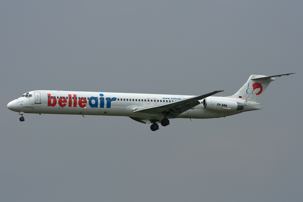 Belle Air MD-82 ZA-ARD im Anflug auf 23 in LGG / EBLG / Liege am 10.05.2010