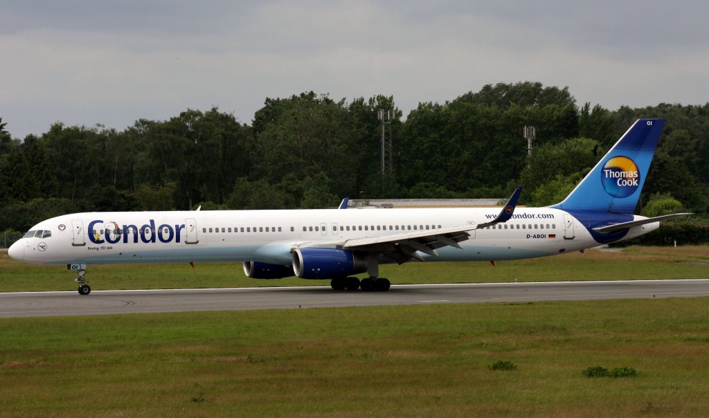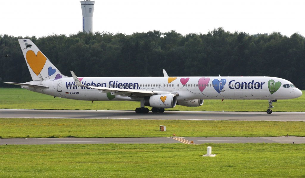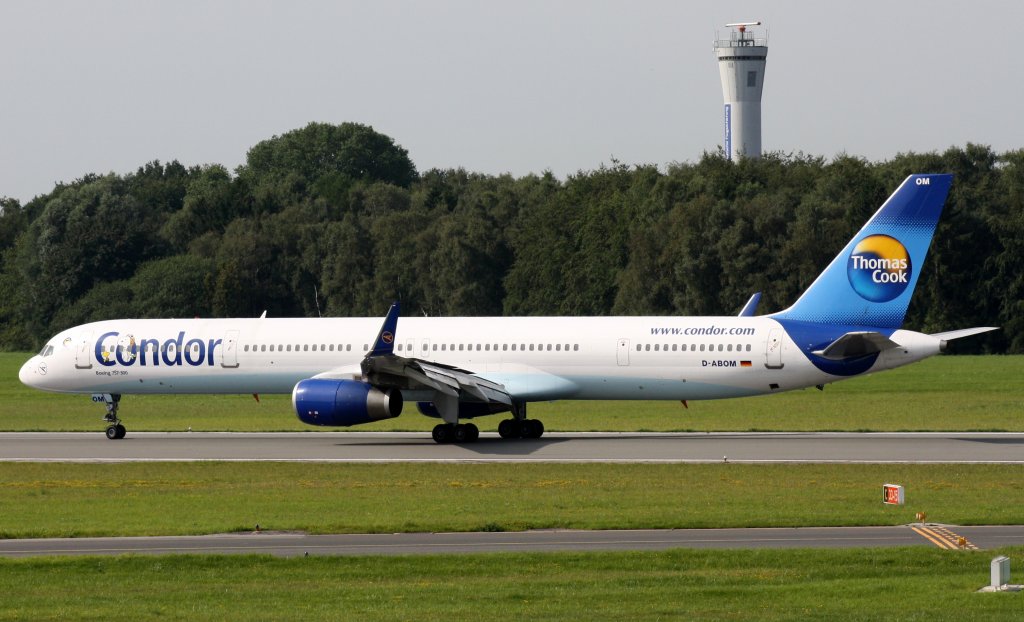 Condor Peanuts B757-300 D-ABOJ auf der 23L in DUS / EDDL / Düsseldorf am 17.04.2011