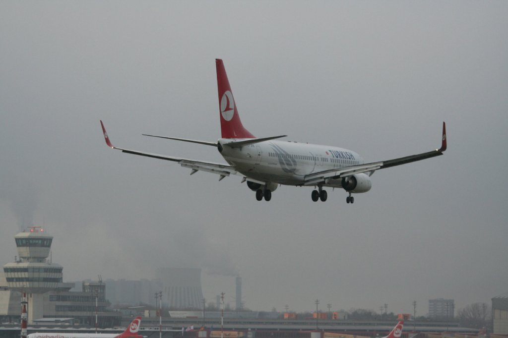 Turkish Airlines B 737-8F2 TC-JFK kurz vor der Landung in Berlin-Tegel am 31.12.2011