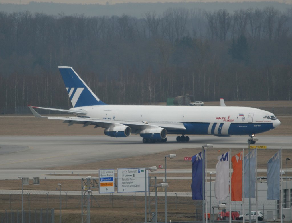 Polet Flight Iljuschin IL-96-400T RA-96102 "Valeriy Menetskiy" nach der Landung in München an einem sehr trüben 10.03.2011