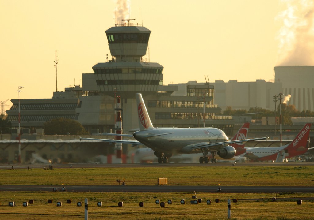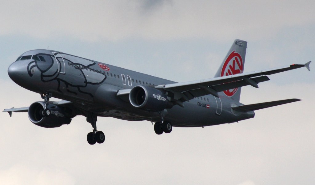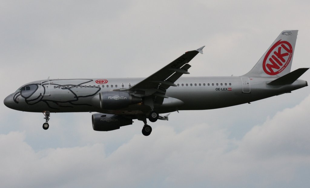 Fly Niki A 320-214 OE-LEE kurz vor der Landung in Berlin-Tegel am 04.10.2011