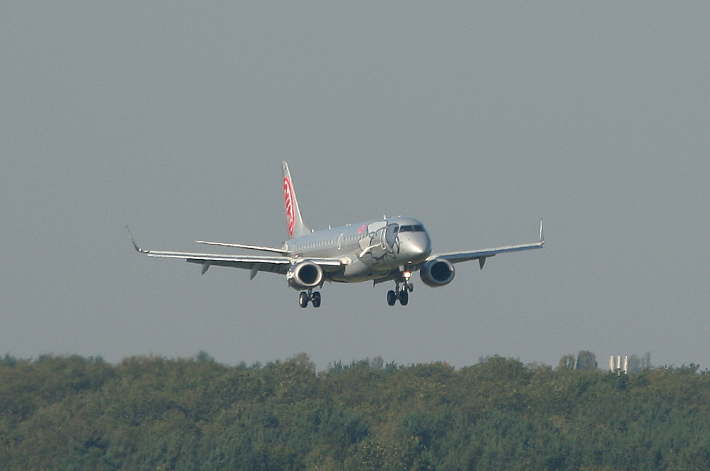 Fly Niki Embraer ERJ-190-100LR OE-IHA kurz vor der Landung in Berlin-Tegel am 04.10.2011