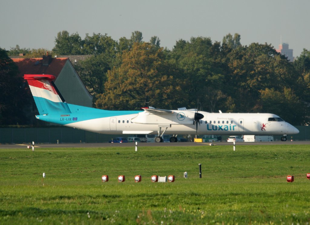 Luxair De Havilland Canada DHC-8-402Q LX-LGE kurz vor dem Start in Berlin-Tegel am 24.09.2011