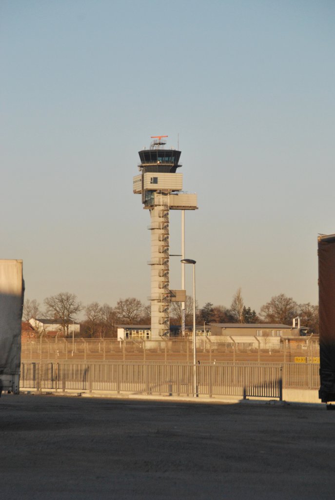 Blick von unten auf den alten Tover am Hannover Aiport am 04.05.2011.