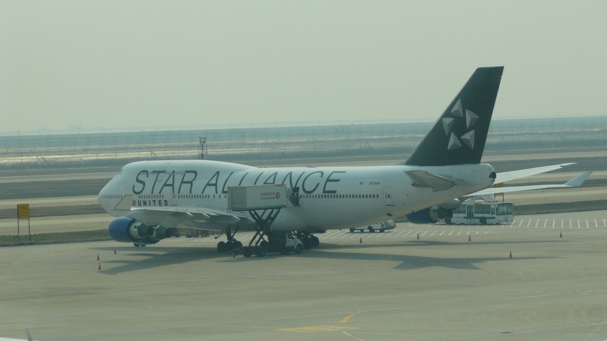 Boeing 747-400 von United mit der Kennung N121UA am 27.3.2011 in Shanghai