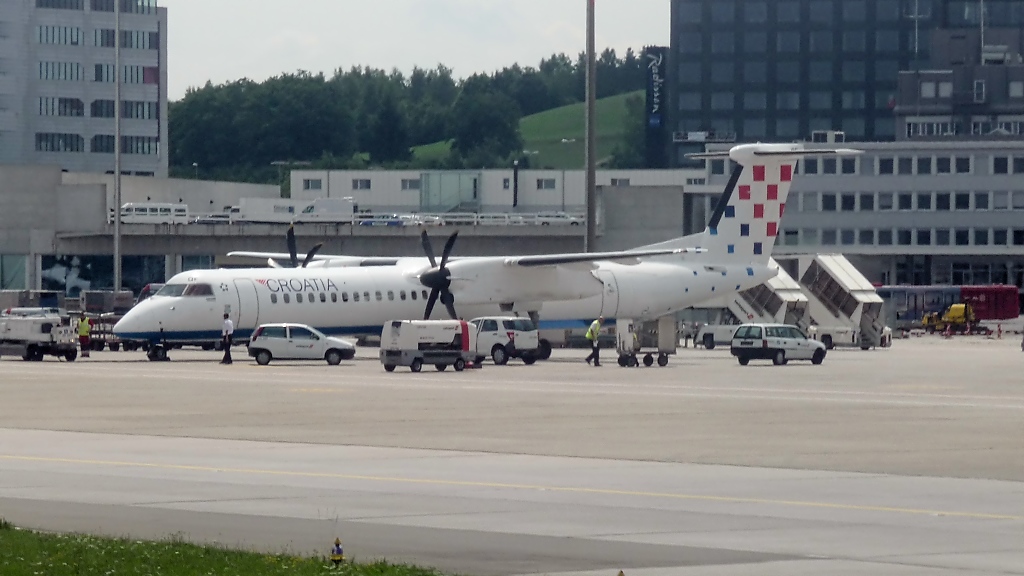 Eine Dash8-q300 von Intersky erreicht die Gate-Position am Flughafen Friedrichshafen, die OE-LIC ist in Friedrichshafen beheimatet ... aufgenommen am 29.12.2012 mathias