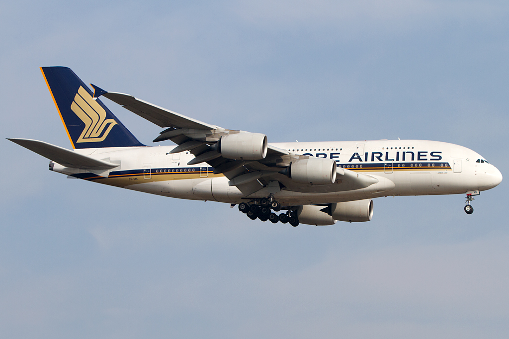 Singapore Airlines A 380-841 9V-SKF bei der Landung in Frankfurt am Main am 16.08.2012