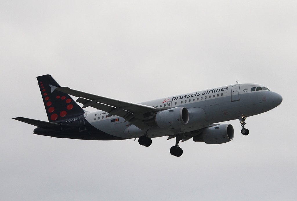 Brussels Airlines A 319-112 OO-SSR bei der Landung in Berlin-Tegel am 01.12.2012