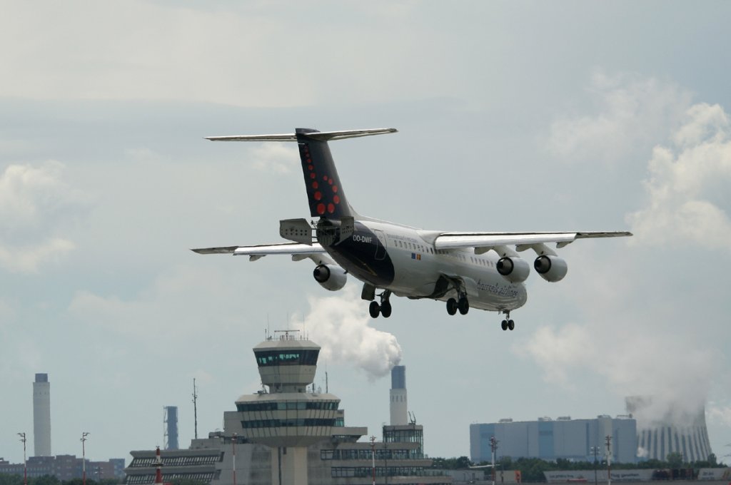 Brussels Airlines Avro Regjet RJ100 OO-DWF bei der Landung in Berlin-Tegel am 25.06.2012