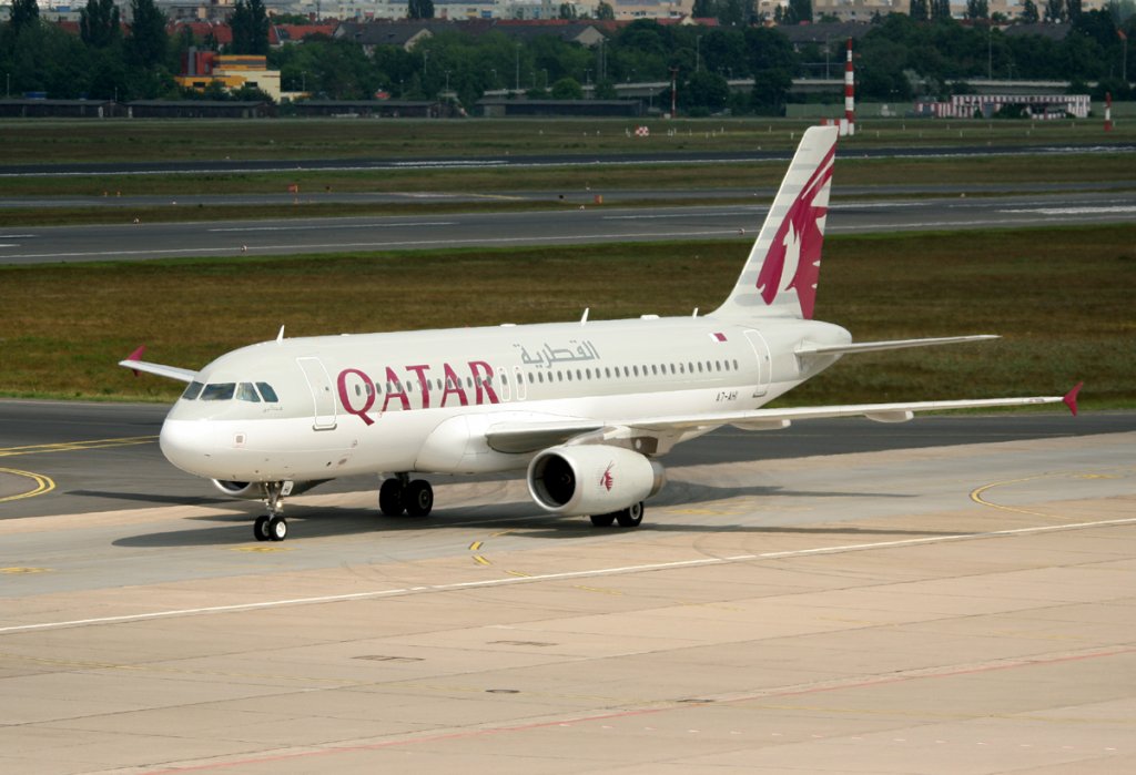 Qatar Airways A 320-232 A7-AHO bei der Landung in Berlin-Tegel am 21.07.2012