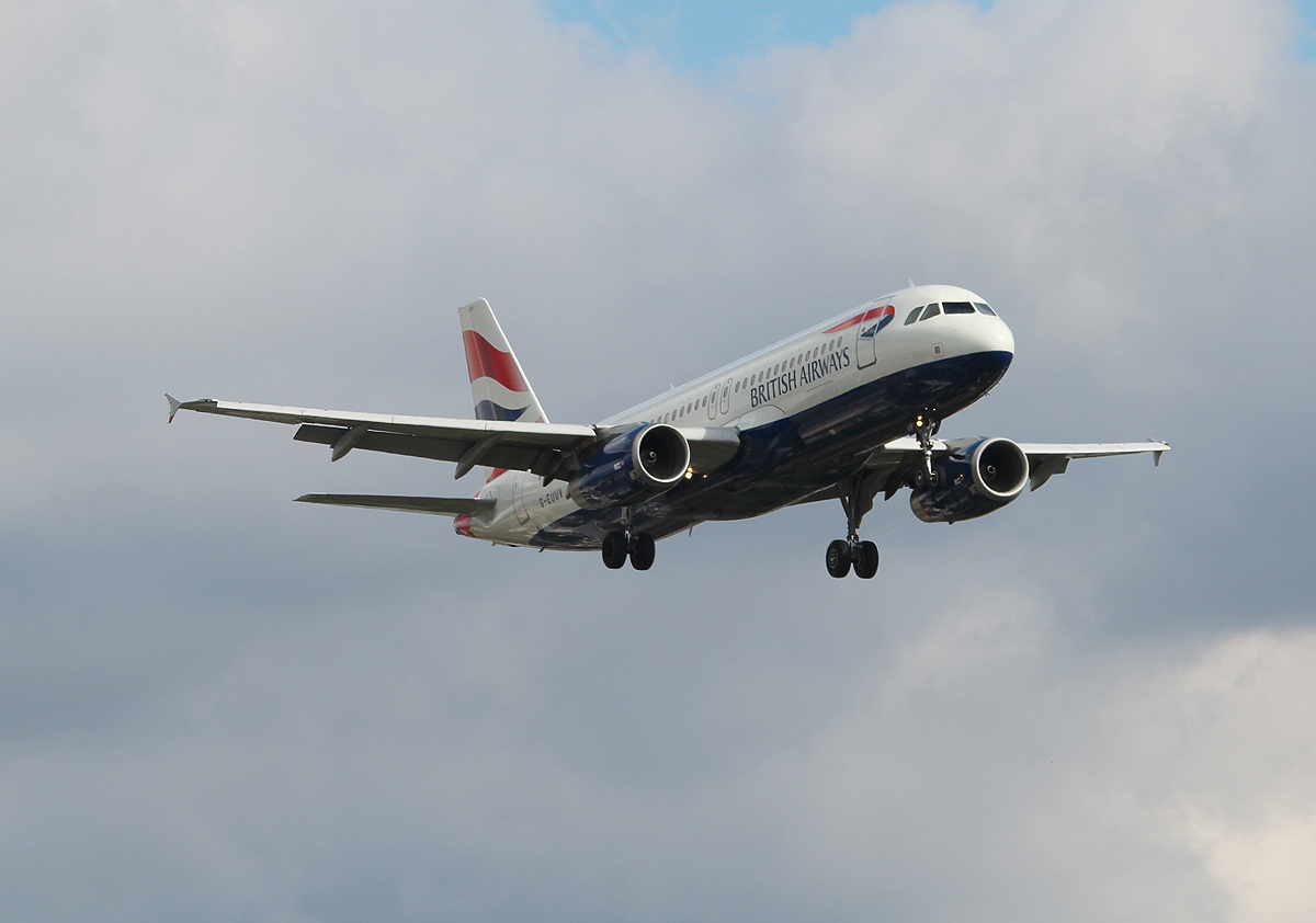 British Airways A 320-232 G-EUYB bei der Landung in Berlin-Tegel am 31.10.2013