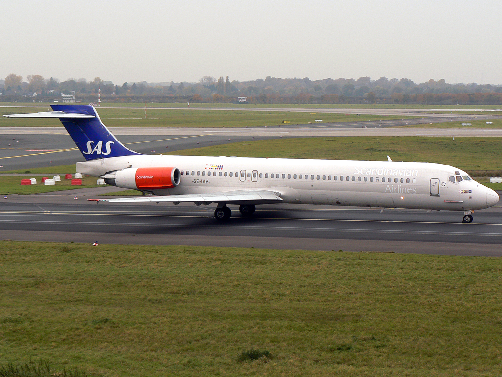 SAS MD-87 SE-DIP auf dem Taxiway zur 23L in DUS / EDDL / Düsseldorf am 01.11.2007