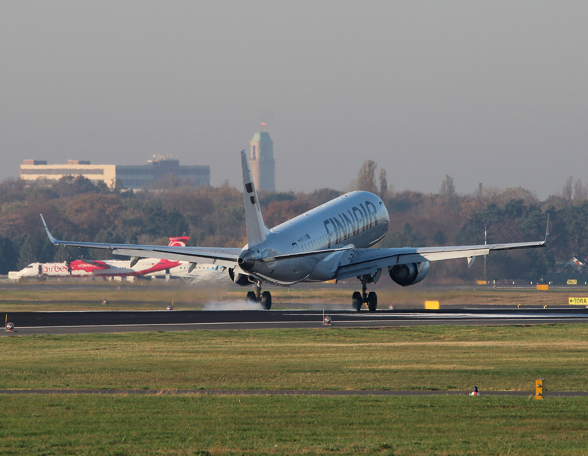 Finnair ERJ-190-100LR OH-LKF bei der Landung in Berlin-Tegel am 09.11.2013