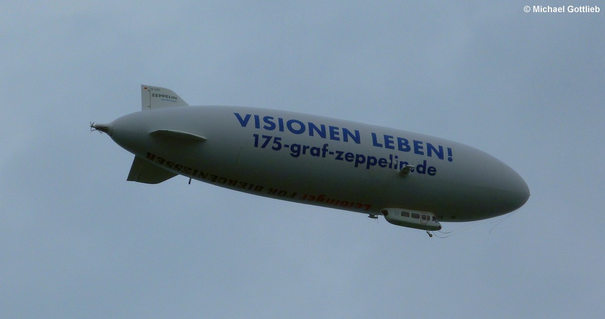 Zeppelin D-LZZF / LZ N07-100 mit der Aufschriftseite  VISIONEN LEBEN  über Wasserburg (Bodensee, September 2013)