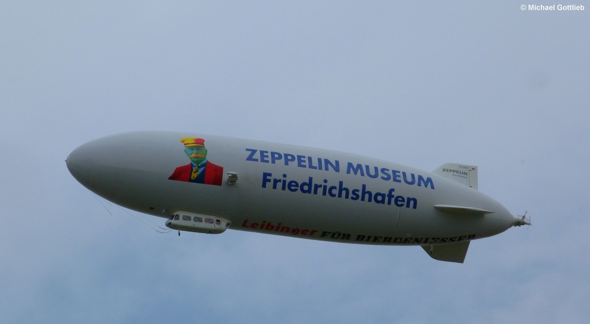 Zeppelin D-LZZF / LZ N07-100 mit der Aufschriftseite "ZEPPELIN MUSEUM" über Wasserburg (Bodensee, September 2013)