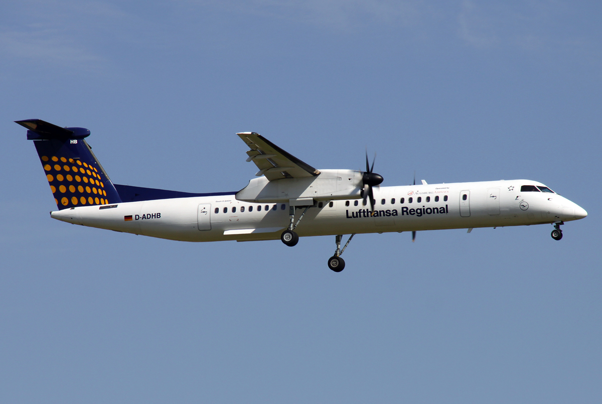 Lufthansa Regional Dash 8-400 D-ADHB im Anflug auf 26R in MUC / EDDM / München am 23.07.2013