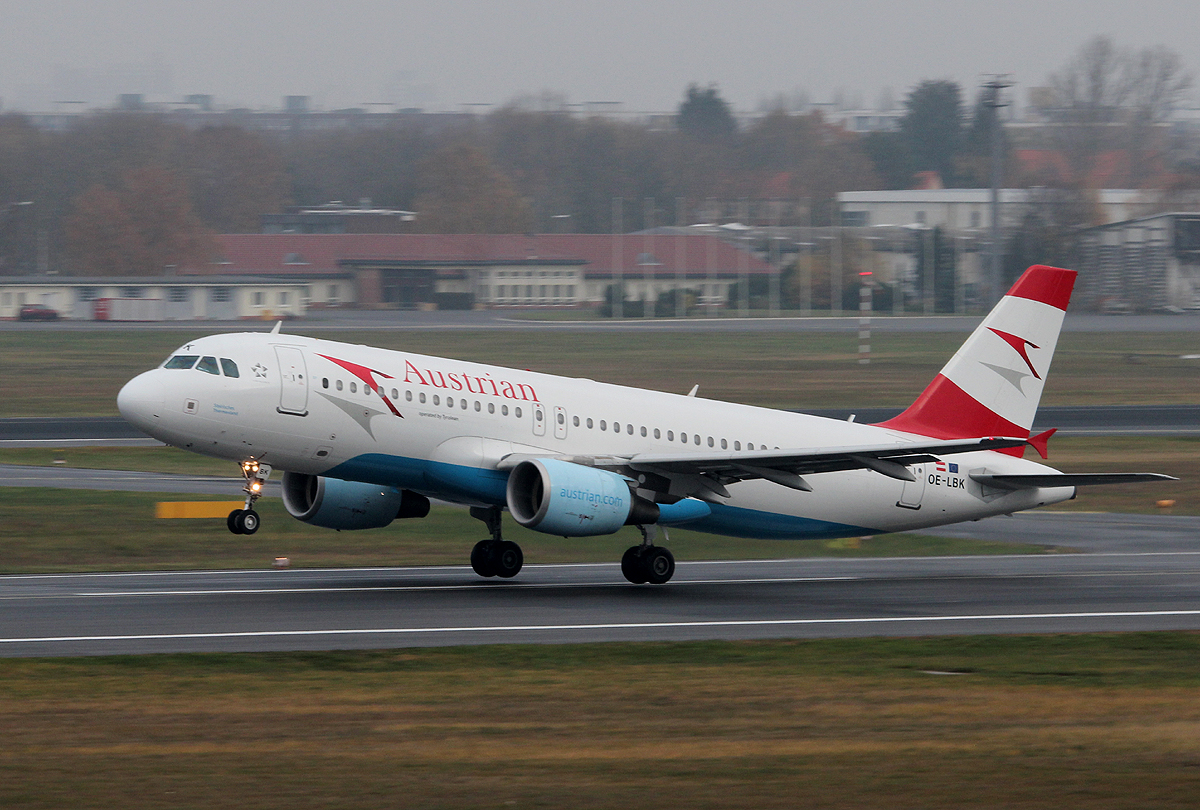 Austrian Airlines A 320-214 OE-LBX bei der Landung in Berlin-Tegel am 09.11.2013