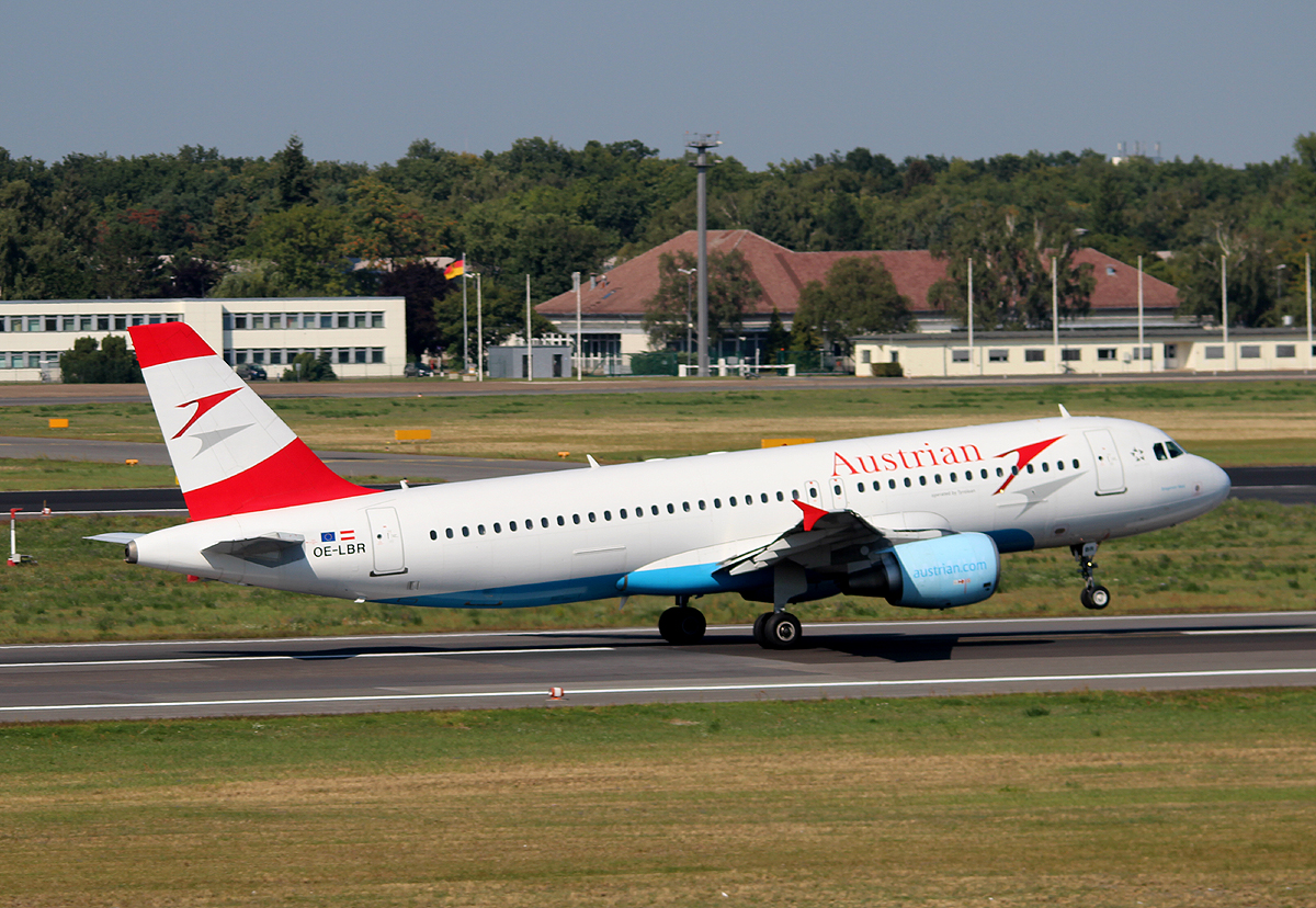 Austrian Airlines A 320-214 OE-LBK bei der Landung in Berlin-Tegel am 18.06.2013