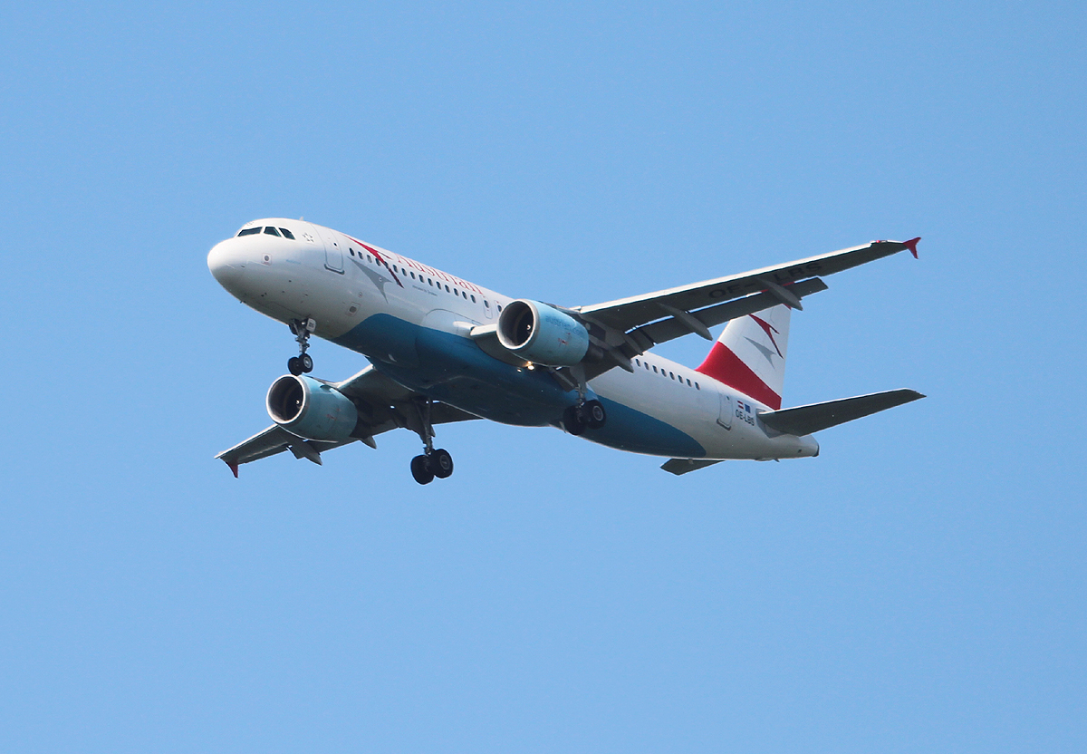 Austrian Airlines A 320-214 OE-LBS bei der Landung in Frankfurt am 11.06.2013