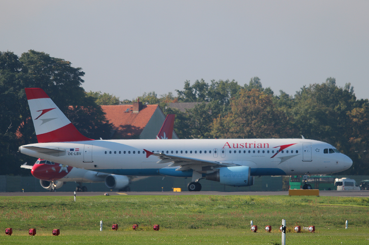 Austrian Airlines A 320-214 OE-LBV kurz vor dem Start in Berlin-Tegel am 28.09.2013