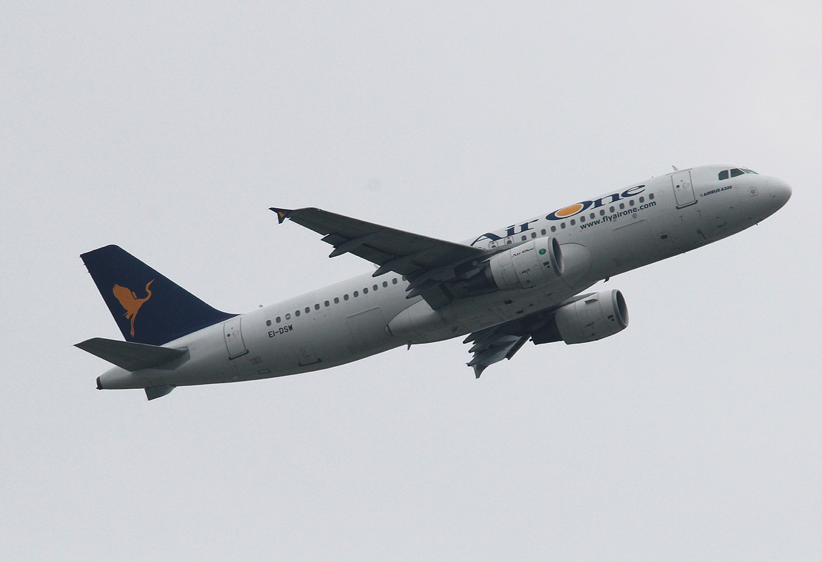 Air One A 320-216 EI-DSW beim Start in Frankfurt am 10.06.2013