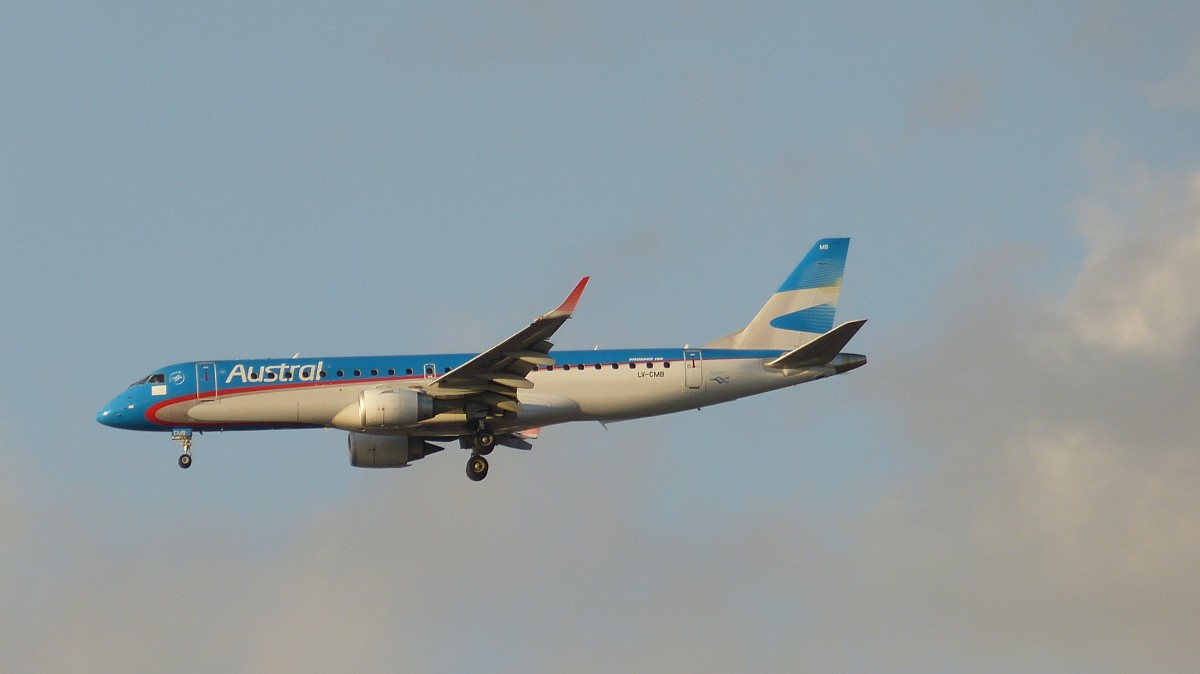 Embraer 190 von Austral Lineas mit der Kennung LV-CMB am 25.3.2013 in Buenos Aires