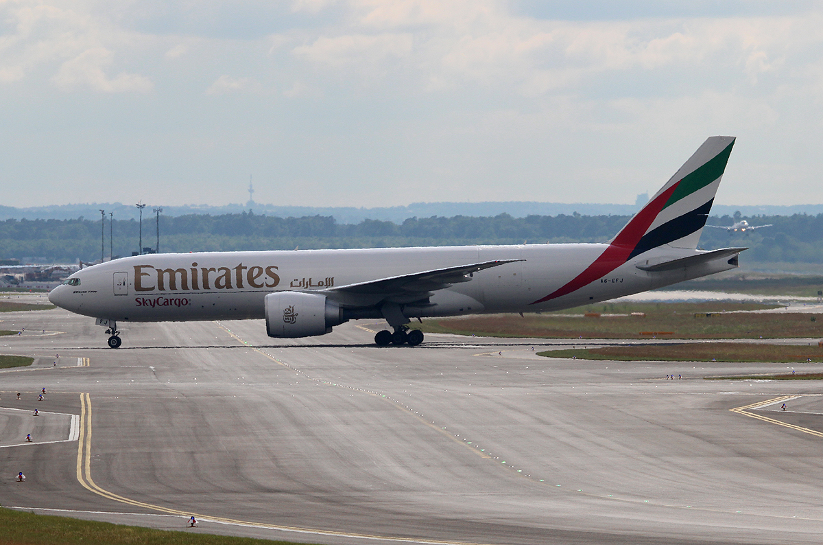 Emirates Sky Cargo B 777-F1H A6-EFJ bei der Ankunft in Frankfurt am 09.06.2013