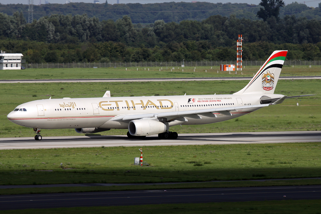 Air14 in Payerne zum 100-jährigen Jubiläum der Schweizer Luftwaffe: Flugvorführung der Patrouille Suisse zusammen mit dem Swiss A330 HB-JHN am 30. August 2014. Julian Ryf
