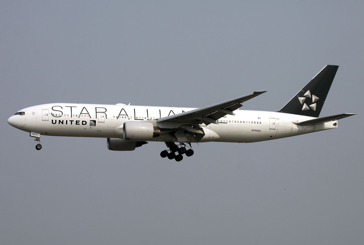 United Star Alliance B777-200 N794UA im Anflug auf 01 in PEK / ZBAA / Peking am 07.09.2014