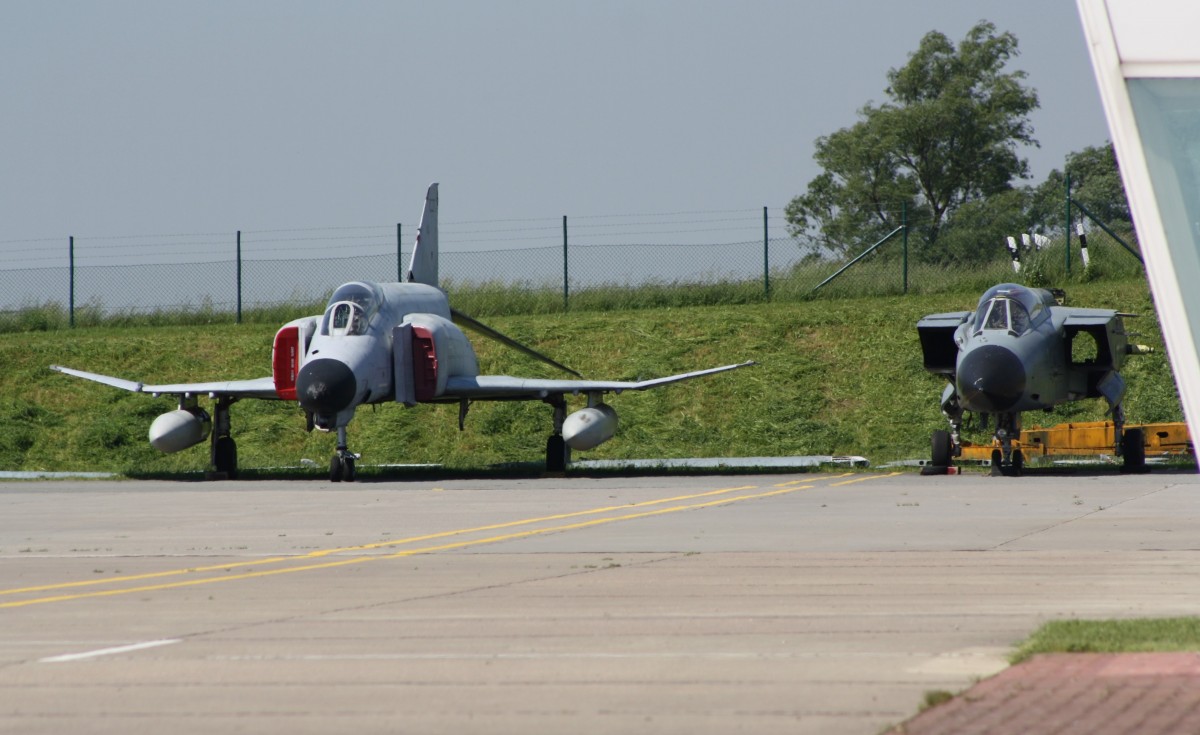Phantom F-4F , ehemals 37+58 des JG 72 der Luftwaffe hat sich zum Tornado-Fragment gesellt, Aufnahme vom 22.05.2014 auf dem Flughafen Neubrandenburg-Trollenhagen