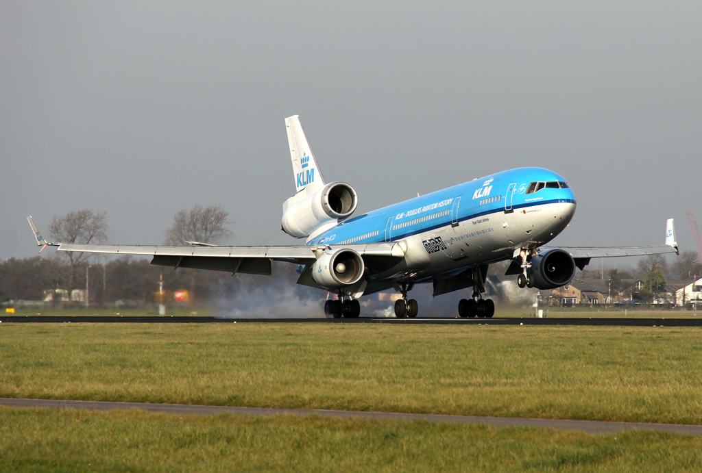 KLM Abschieds MD-11 PH-KCD beim Touchdown auf 18R in AMS / EHAM / Amsterdam am 11.11.2014