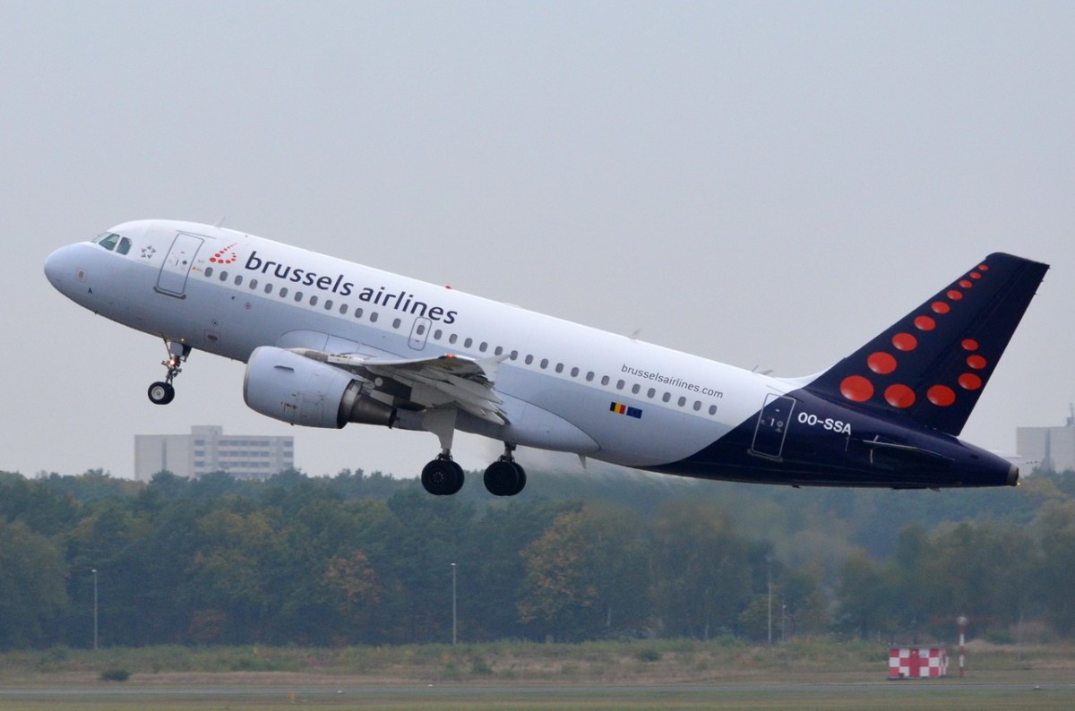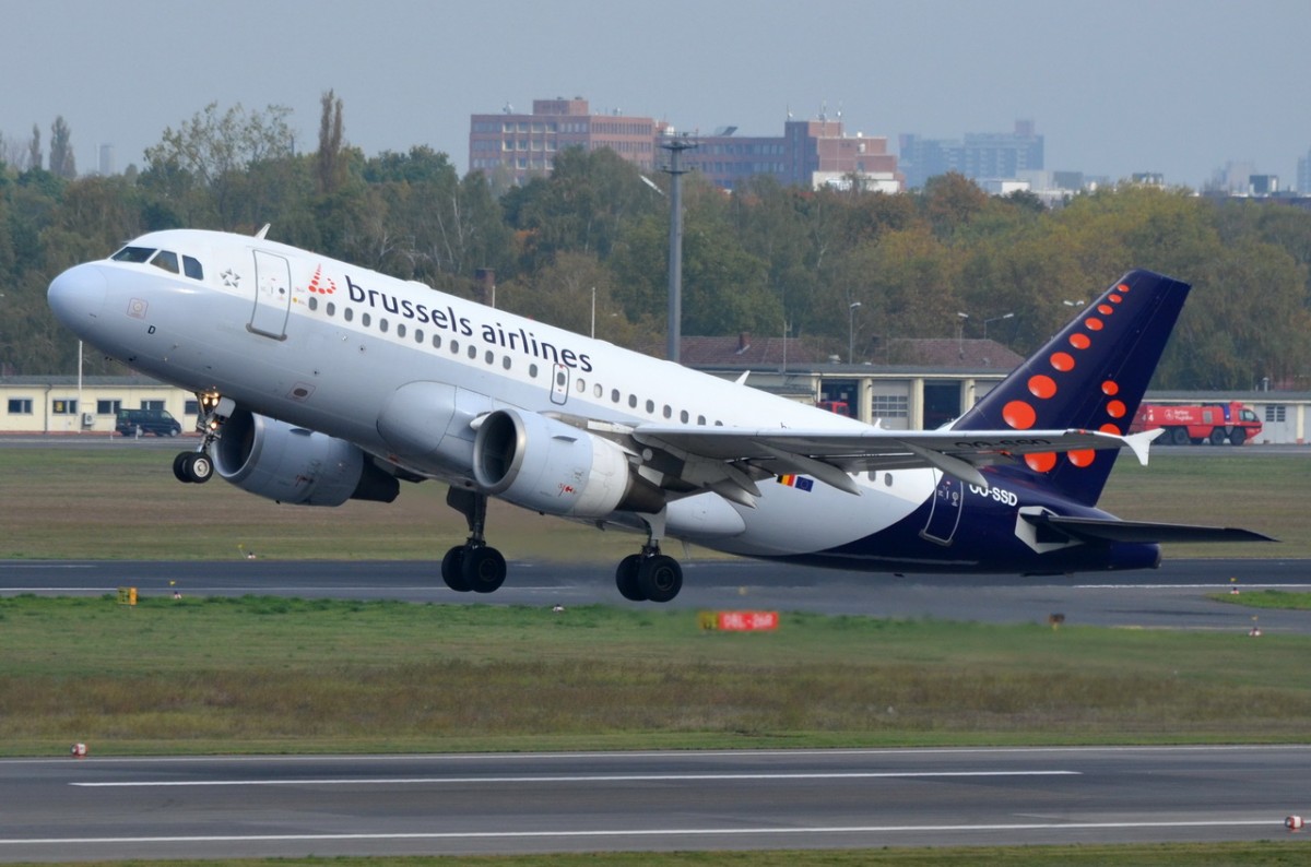 Brussels Airlines A 319-111 OO-SSF beim Start in Berlin-Tegel am 29.11.2014