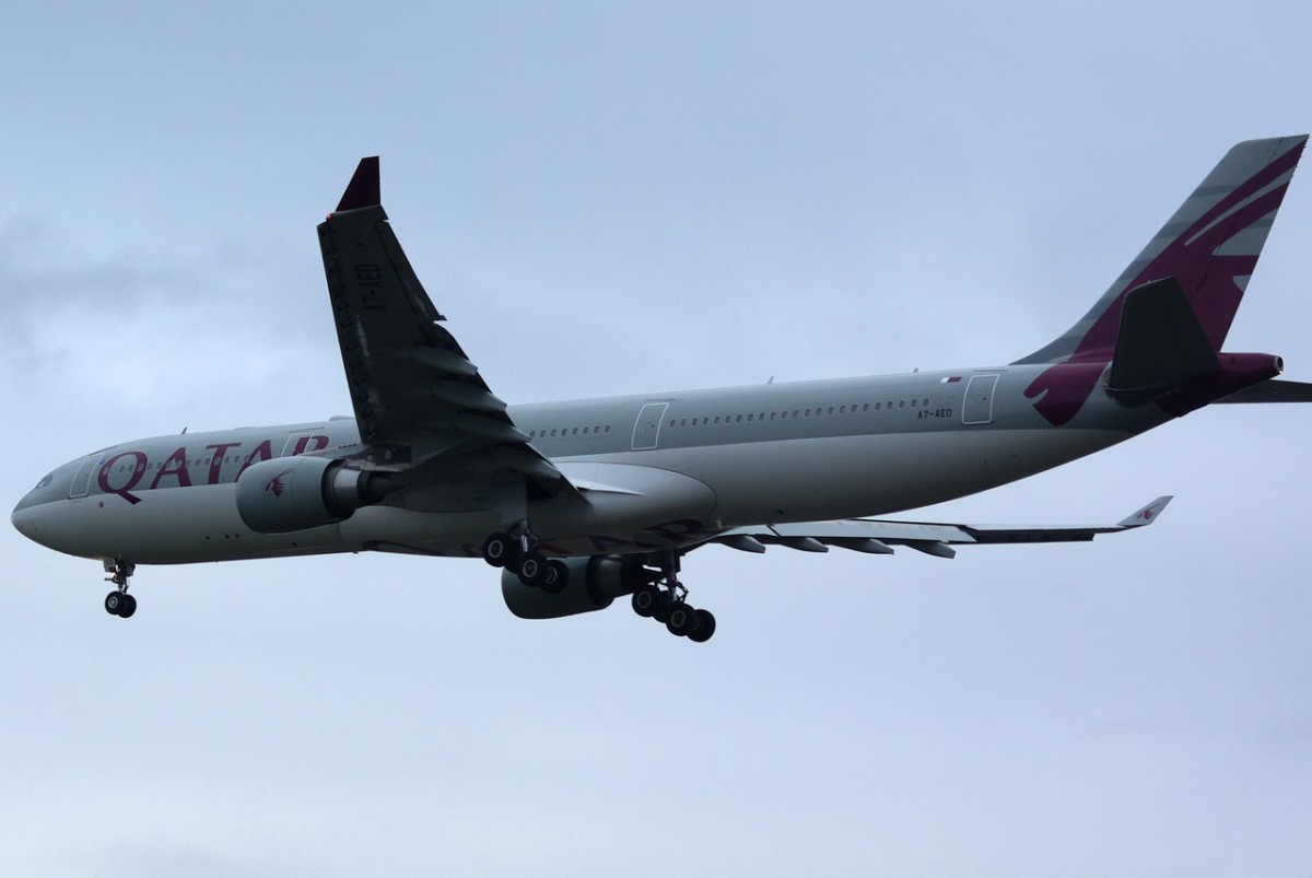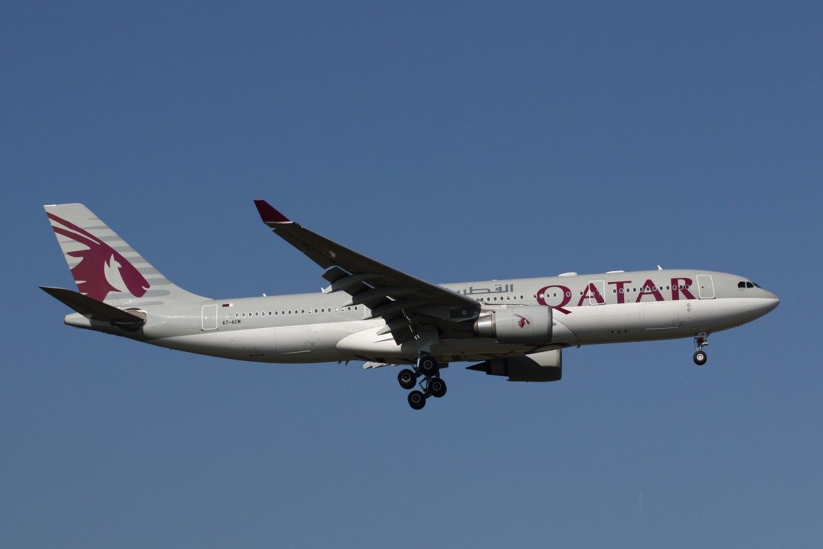 Qatar Airways, Boeing 787-8 Dreamliner, A7-BCI. Qatar kommt jeden Tag mit dem neuen Dreamliner nach Zürich. Die Maschine ist schon von weitem beim Landeanflug an ihrer besonderen Flügelstellung zu erkennen. 2.10.2014 Jürgen Walter