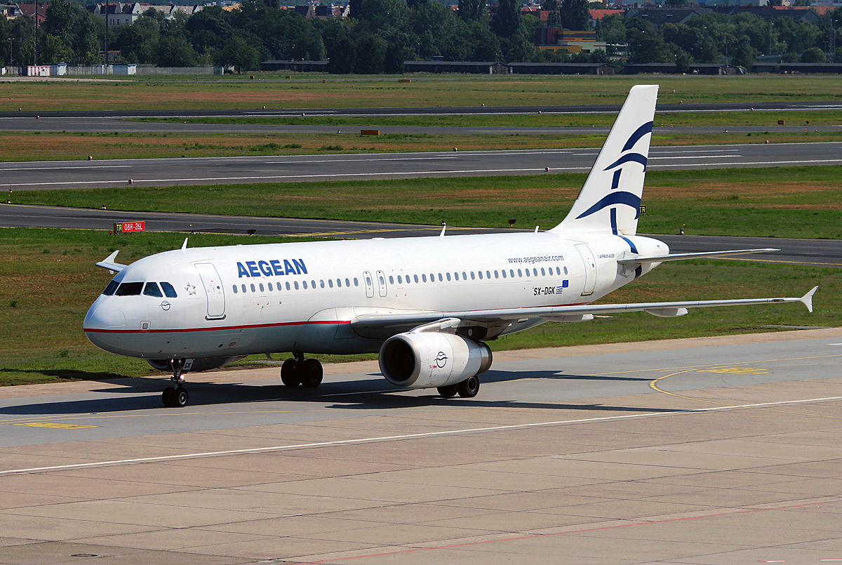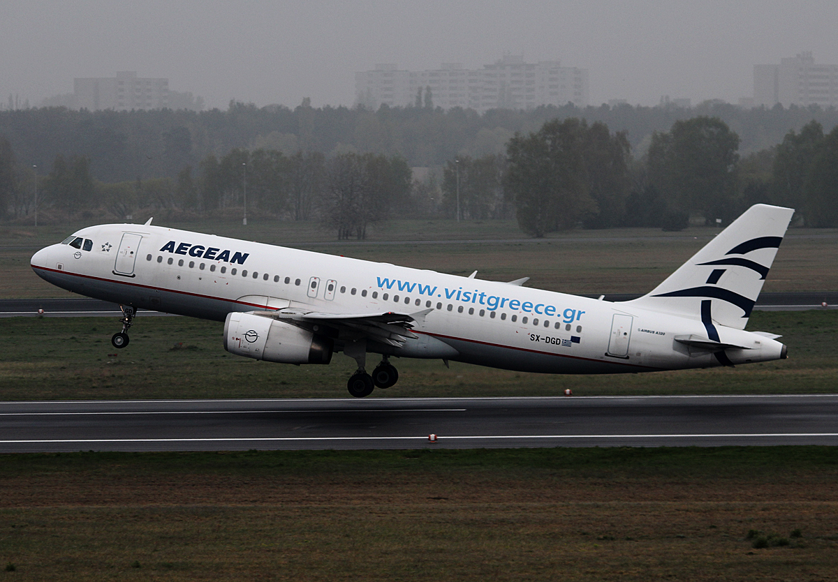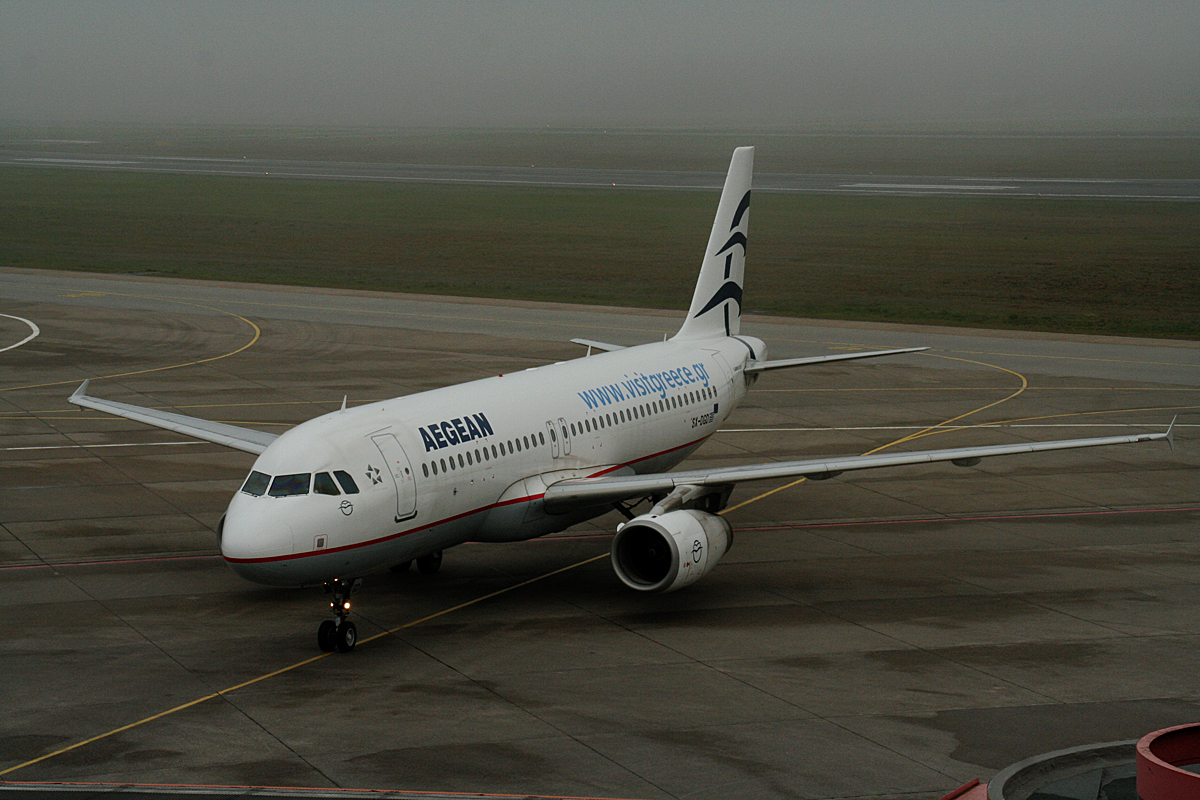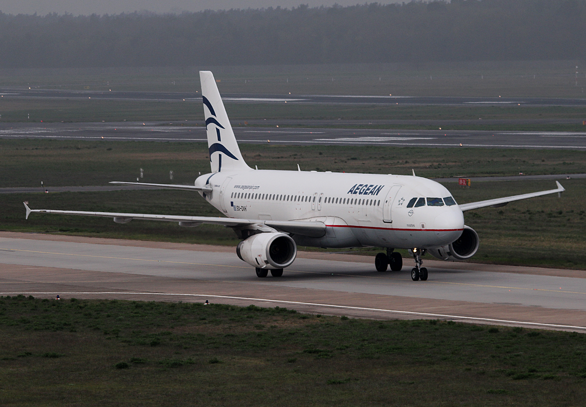 Aegean A 320-232 SX-DVG kurz vor dem Start in Berlin-Tegel an einem sehr nebligen 18.10.2014