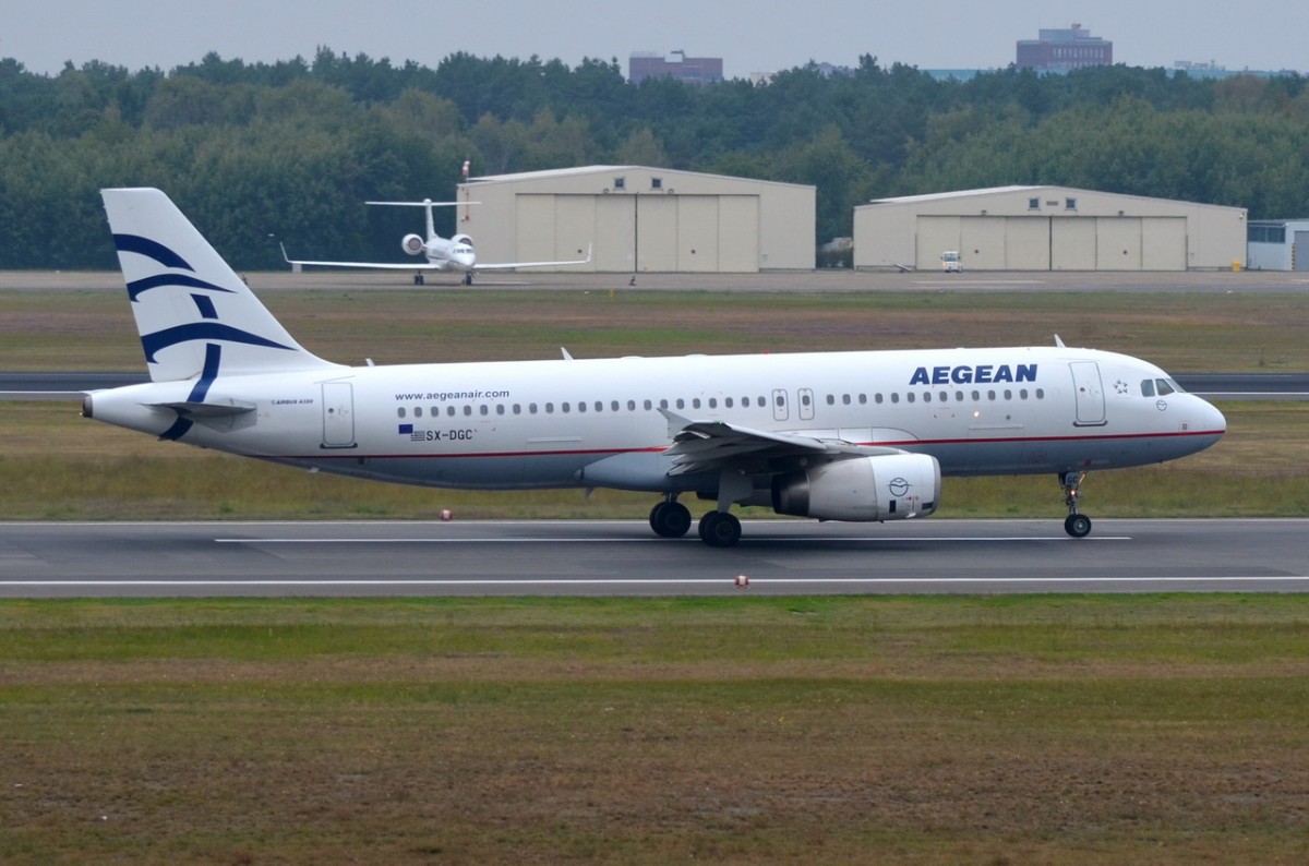 Aegean A 321-231 SX-DGQ kurz vor dem Start in Berlin-Tegel an einem sehr nebligen 18.10.2014